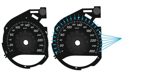 Najwyższej jakości produkt, który trudno odróżnić od oryginalnych tarcz. Nie jest to wyklejanka z folii, które po miesiącu się rozklejają. Nasze tarcze produkowane są z materiału odpornego na wysokie i niskie temperatury oraz wilgoć. Wielowarstwowy nadruk, gładka matowa powierzchnia, perfekcyjne kształty i otwory wycinane laserowo, kontrolki jak w oryginalnych tarczach - w miejscach kontrolek powierzchnia jest równa i gładka - kontrolki są niewidoczne gdy się nie świecą.