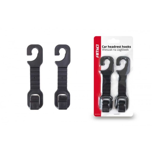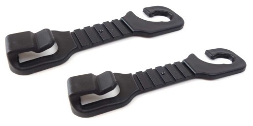 Uniwersalne wieszaki przeznaczone do montażu na pręcie zagłówka w fotelu samochodowym. Umożliwiają zawieszenie za fotelem dwóch toreb z zakupami. Łączny udźwig 1,5kg