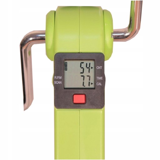 Wyposażony w wyświetlacz, zasilany baterią 1,5 V AG13, użytkownik może śledzić kluczowe parametry treningu, takie jak ilość wykonanych obrotów, czas trwania ćwiczeń, szacunkową liczbę spalonych kalorii oraz liczbę obrotów na minutę.