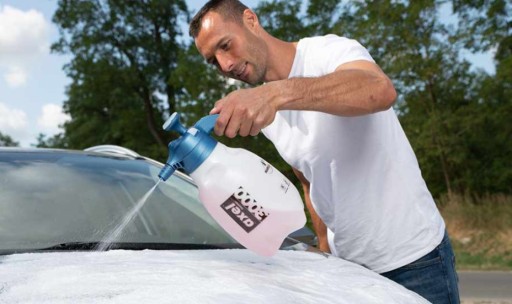 - Nanieść pianę na samochód przy użyciu pianownicy, zaczynając od dołu karoserii.