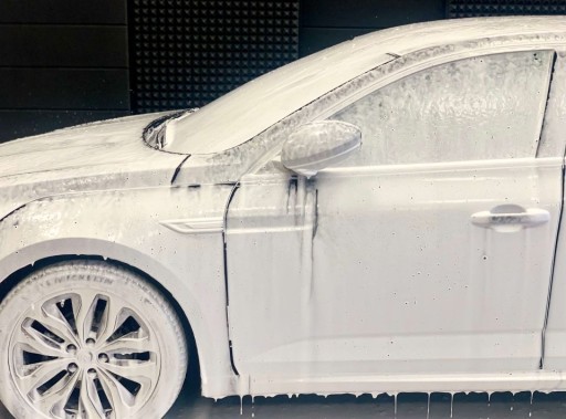 - Poczekać kilka minut, aż piana opadnie a tym samym zmiękczy na karoserii brud.