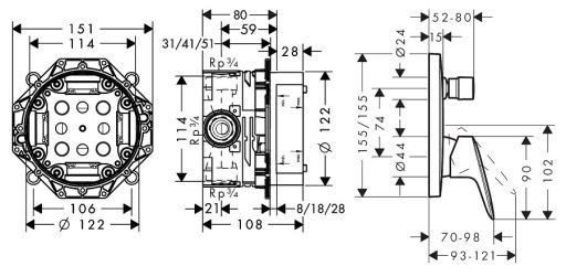 30см + комплект скрытого монтажа Logis HANSGROHE со смесителем