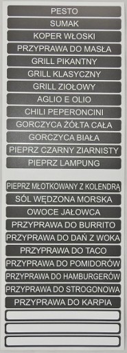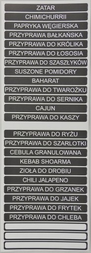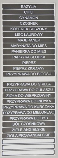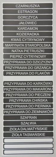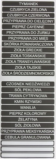 Naklejki z nazwami przypraw.