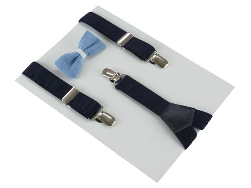 Wariant nr 7 : granatowe szelki i niebieska muszka wykonana z tkaniny garniturowej