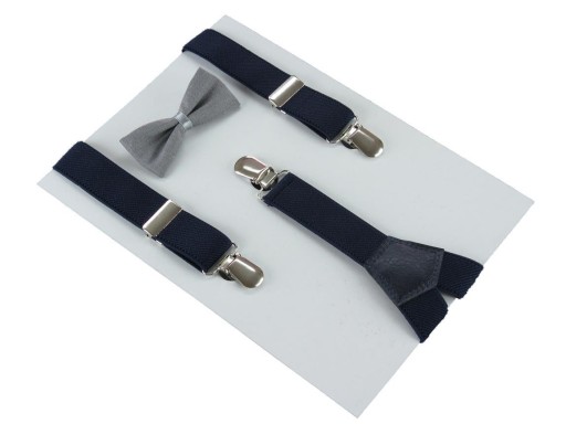 Wariant nr 8 : granatowe szelki i jasnoszara muszka wykonana z tkaniny garniturowej