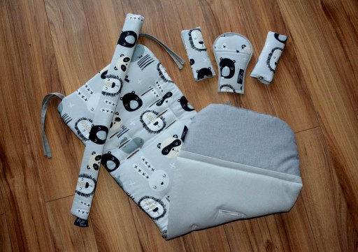 Wypełnienie nakładek stanowi antyalergiczna, certyfikowana włóknina. Jest miękka, stąd też nakładki bardzo dobrze zabezpieczają przed otarciami i są wygodne dla maluszka. Wypełnienie jest wszywane wewnątrz do tkanin zewnętrznych, oraz dodatkowo przepikowane, dzięki temu nie przemieszcza się podczas użytkowania i prania.