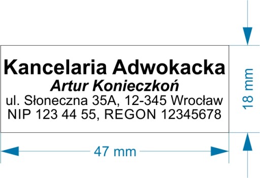UWAGA! Treść pieczątek jest kopiowana z wiadomości do sprzedającego. Prosimy w związku z tym o dokładne sprawdzenie poprawności wysłanej treści. Po zrealizowaniu zamówienia, bądź wcześniejszej akceptacji projektu nie ponosimy odpowiedzialności za błędy w przesłanej treści.