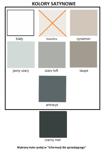 Wybrany kolor prosimy podać w "wiadomości dla sprzedającego" podczas wypełniania formularza dostawy: