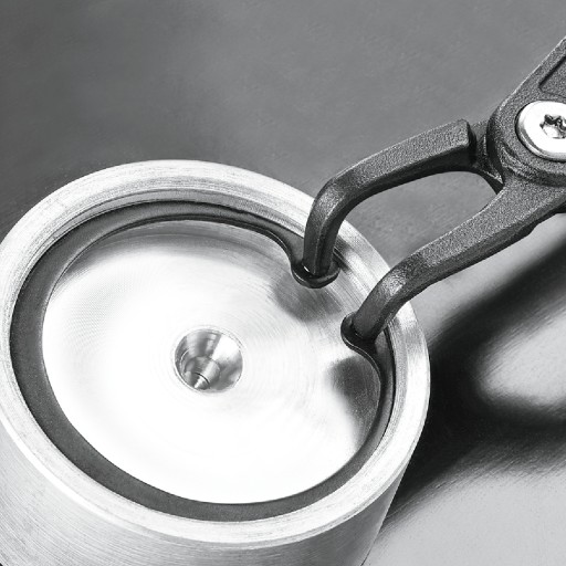 Wstawiane końcówki ze stali łożyskowej wytwarzanej w szczególnie ścisłym procesie technologicznym do ciężkich zastosowań. Antypoślizgowy kąt końcówki umożliwia mocne przyleganie pierścienia podczas ściskania lub rozszerzania. Szeroki uchwyt dla lepszej obsługi.