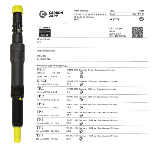 Aukcja dotyczy profesjonalnie zregenerowanego, oryginalnego wtryskiwacza Delphi o nr. EJDR00501Z w Autoryzowanym Bosch Diesel Service.