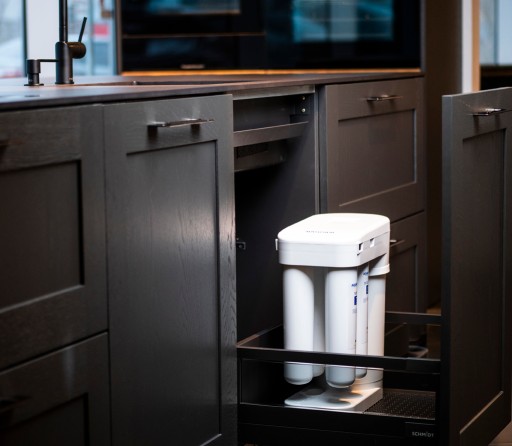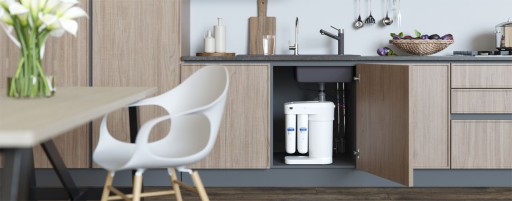 Urządzenie możesz umieścić w szafce pod zlewem, lub dowolnej szafce w kuchni, z której poprowadzisz elastyczne wężyki w celu podłączenia filtra do kranu na zlewie.