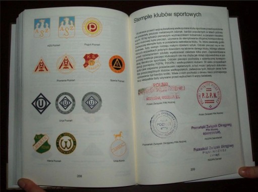 Kolor: strony z kolorowymi logami i stemplami klubów
