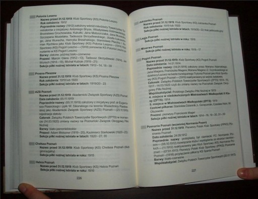 Opisywane kluby: Fraustädter SV Fraustadt, Seminar SV Fraustadt, Deutsche Eiche Gnesen, Gimnasium SV Gnesen, Deutscher MTV Gnesen, Diana Kempen, Progimnasium Kempen, Vorwärts Kempen, Preussen Krotoschin, Comenius Lissa, Germania Lissa, MTV Lissa, Germania Ostrowo, Ostrowo'er FC, Britannia 05 Posen, Deutscher SV Posen, Germania Posen, Hertha Posen, Jahn Posen, Liga 1908 Posen, Mars 1910 Posen, Normania Posen, Posener Rasensport, Posener SV Posen, Preußen Posen, Union Posen, Viktoria Posen, Wacker Posen, Borkum Borek, Victoria Borek, Wisła Borek, KS Chodzież, Stella Gniezno, Celeritas Grodzisk Wielkopolski, Florencja Grodzisk Wielkopolski, Kolumbia Grodzisk, Wiktorja Jarocin, Prosna Kalisz, Polonia Kępno, Makkabi Konin, Unia Konin, Fervor Kościan, Biali Krotoszyn, Hera Krotoszyn, Ostrovia Ostrów Wielkopolski, Venetia Ostrów Wielkopolski, Pogoń Leszno, Polonia Leszno, Prosna Pleszew, AZS Poznań, Chelsea Poznań, Helsia Poznań, Jutrzenka Poznań, Legja Poznań, Minerwa Poznań, Pogoń Poznań, Posnania Poznań, Polonia Poznań, Sokół Poznań III-Wilda, Sparta Poznań, Trytonia Poznań, Unia Poznań, Warta Poznań, Wisła Poznań, Zorza Poznań, Polonia Środa Wielkopolska, Czarni Toruń, Jordan Wolsztyn