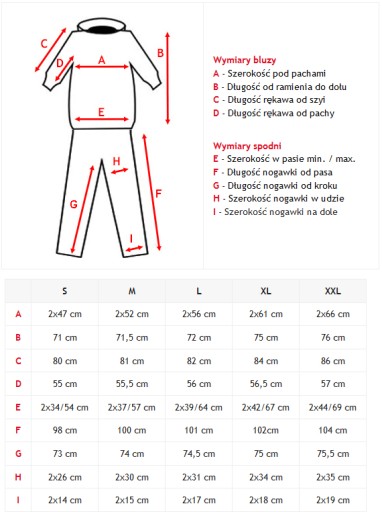 Istnieje możliwość dobrania różnych rozmiarów bluzy i spodni np. (bluza rozmiar M, spodnie rozmiar S), takim wypadku prosimy dodać informację w uwagach do zamówienia.