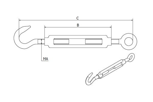 Śruba Rzymska Ocynkowana Napinacz Naciąg Do Naciągu M5 125mm Hak - Oko