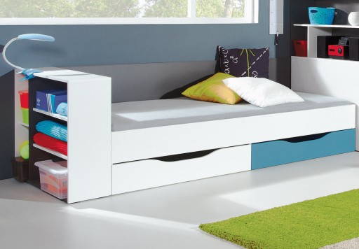 - dodatkowy panel szerokości 25cm posiada półki – można postawić go w dowolnym miejscu, nie jest na stałe połączony z łóżkiem