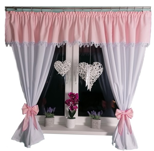 - Kolor firan: pudrowy róż
