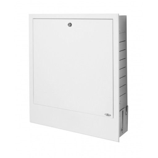 - Głębokość montażowa szafki i jej wysokość regulowane, a front zdejmowany w całości, co umożliwia wygodny montaż rozdzielacza. Drzwiczki zamykane na śrubokręt, monetę lub inne płaskie narzędzie.