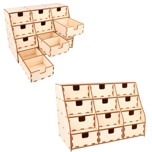 Bardzo pojemny i praktyczny organizer posiadający 12 szufladek.