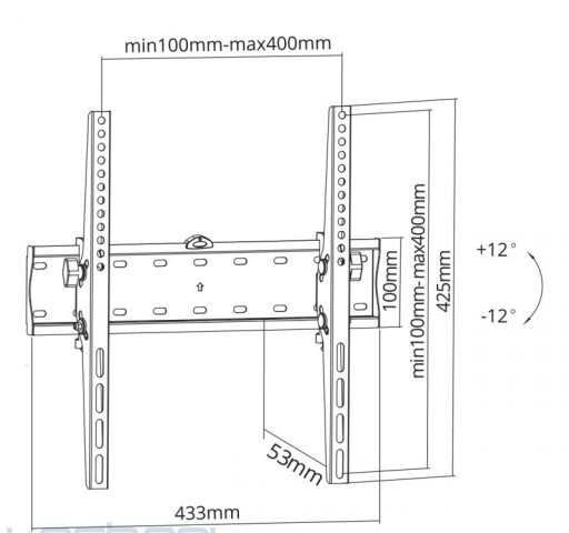 Uchwyt jest odpowiedni dla odbiorników wielkości od 32’’ do 55’’, i umożliwia podtrzymanie urządzeń o wadze do 40 kg.