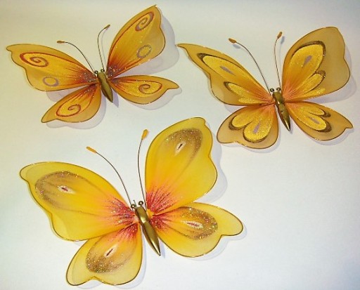Dzięki delikatnemu wykończeniu brokatem motyle pięknie połyskują, są ręcznie malowane