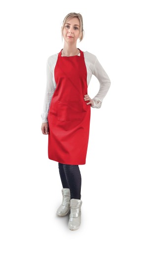 Fartuch dostępny jest w dwóch najbardziej popularnych kolorach czarnym i czerwonym. Przy zakupie powyżej 500 sztuk możliwość uszycia w innym kolorze.