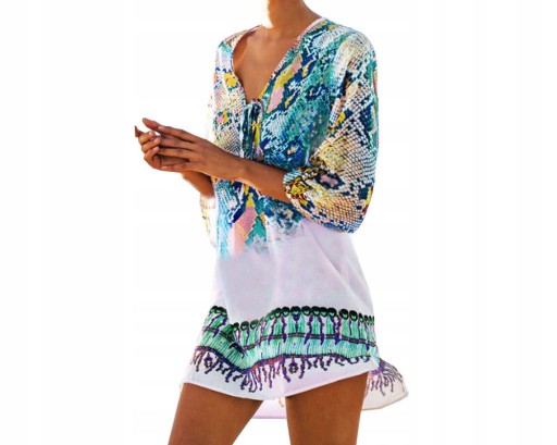 Oryginalna i lekka plażowa tunika we wzór zwierzęcy.