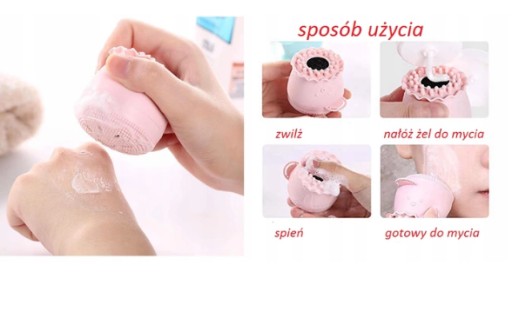 Sposób użycia: Nanieś niewielką ilość kosmetyku do mycia twarzy na czarną gąbeczkę, znajdująca się w dolnej części myjki, następnie górną szerszą częścią szczoteczki, umyj dokładnie twarz.