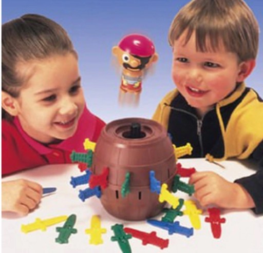 Gra polega na wkładaniu szabli do wybranych przez siebie dziurek w beczce. Jeżeli zrobisz to niezręcznie, Pirat ucieknie z beczki, a Ty... przegrywasz. Gra wymaga zręczności i buduje napięcie.