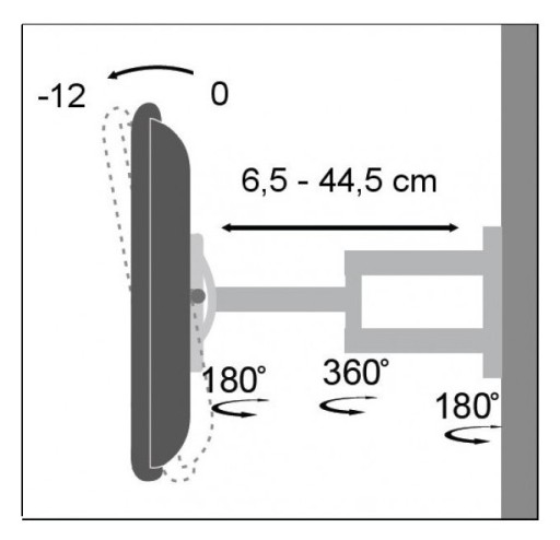 - Przegubowy wysięgnik z regulacją odległości od ściany