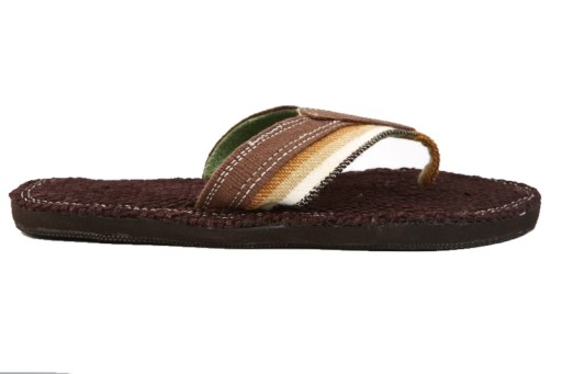 Klapki typu japonki etiopskiej firmy Sole Rebels działającej według zasad sprawiedliwego handlu (Fair Trade), z szacunkiem dla ludzkiej pracy oraz dbałością o środowisko. W całości produkowane z materiałów naturalnych oraz pochodzących z recyklingu. Wykonane ręcznie. W procesie produkcji używane są: juta, tkaniny bawełniane ręcznie tkane na krosnach, guma ze zużytych opon oraz naturalna skóra.