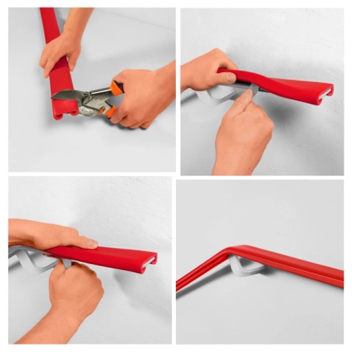 - profile pochwytów poręczowych wyprodukowane są z miękkiego PVC, który jest tworzywem termoplastycznym, stąd jego cechy uzależnione są od temperatury (zanurzenie w gorącej wodzie ułatwia proces układania).
