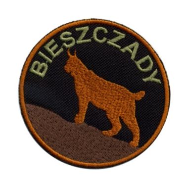 Naszywka Ryś - Bieszczady wykonana techniką haft komputerowy.
