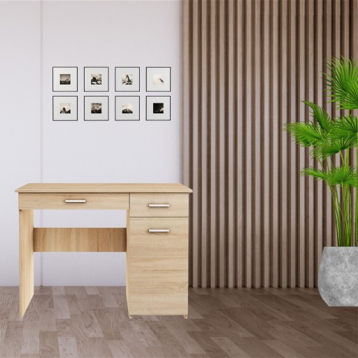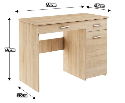 Funkcjonalne biurko będzie doskonałe zarówno do pokoju jak również świetnie wyposaży wnętrze biura. Biurko posiada pojemne szuflady oraz szafkę. Wnętrze biurka pozwala przechowywać dokumenty i artykuły piśmiennicze. Powierzchnia laminowana zabezpiecza biurko przed zarysowaniami i ułatwia jego czyszczenie.