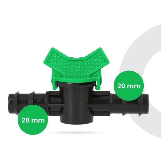 Zawór z podwójnym wtykiem na wąż pozwala na podłączenie dwóch węży kroplujących i kontrolę ich pracy poprzez zamknięcie lub otwarcie przepływu wody. To idealne rozwiązanie w celu modyfikacji systemu lub ochrony na wypadek awarii - element odcina dopływ wody do konkretnej linii.