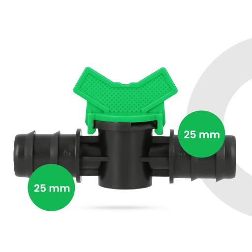 Zawór z podwójnym wtykiem na wąż pozwala na podłączenie dwóch węży kroplujących i kontrolę ich pracy poprzez zamknięcie lub otwarcie przepływu wody. To idealne rozwiązanie w celu modyfikacji systemu lub ochrony na wypadek awarii - element odcina dopływ wody do konkretnej linii.