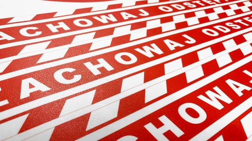 Naklejka jest pokryta laminatem antypoślizgowym (wysoka odporność na zmywanie, ścieranie, szuranie, wytrzyma ruch o dużym natężeniu).