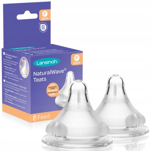 - Opakowanie zawiera dwa smoczki Lansinoh NaturalWave® o szybkim przepływie po 6 miesiącu i do podawania gęstych płynów (np. kaszki)