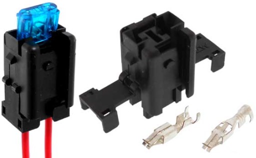 - Gniazda pasują do bezpieczników płytkowych mini (o szerokości około 1,1 cm)