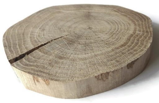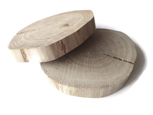 Proponujemy Państwu plastry dębowe bez kory z estetycznie oszlifowanym brzegiem. Plastry posiadają pęknięcie.