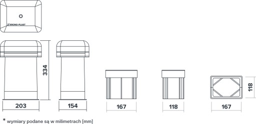 Nasada kominowa prostokątna stanowi zakończenie systemowych kominów wentylacyjnych o wymiarach 160/170 x 120 mm.