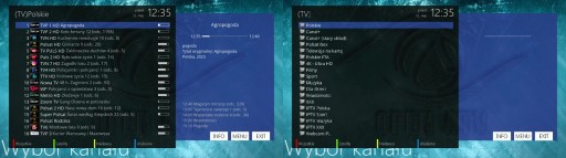 Lista kanałów z podziałem na operatorów i kategorie oraz ikonki/picony