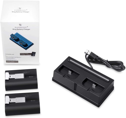 ✔ DZIAŁA Z AKUMULATORAMI PIERŚCIENIOWYMI - Stacja ładująca Wasserstein współpracuje z akumulatorami różnych urządzeń Ring, takich jak Ring Spotlight Cam Camera, Ring Video Doorbell 2, Ring Stick Up Cam Battery HD i Ring Door View Cam. Jest kompatybilny z oryginalną baterią pierścieniową (ASIN: B076JKHDQT) i akumulatorem Wasserstein (ASIN: B07HQDHZKX).