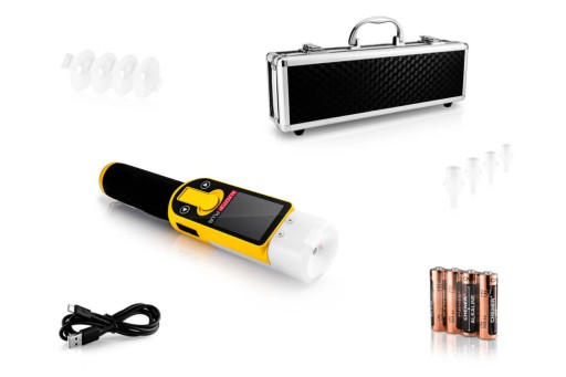 Po założeniu odpowiedniego ustnika dostarczonego w zestawie możemy przeprowadzić test ustnikowy. Alkomat działa wtedy identycznie jak policyjne alkomaty ustnikowe i podaje wynik na wyświetlaczu w postaci cyfrowej.