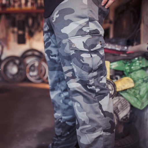 - Podszycie na kolanach, pośladkach wraz z biodrami wykonane z włókna aramidowego DuPont™ Kevlar®