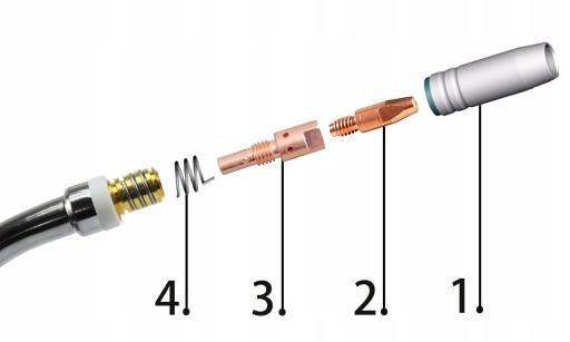 Zestaw podstawowych elementów niezbędnych do uzbrojenie każdego uchwytu spawalniczego MIG/MAG o standardzie MB 25