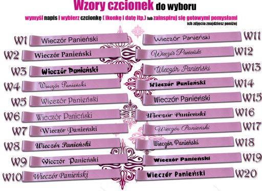 W tych wzorach możesz modyfikować tekst i pamiętaj by wybrać dla gotowego wzoru kolor szarfy.