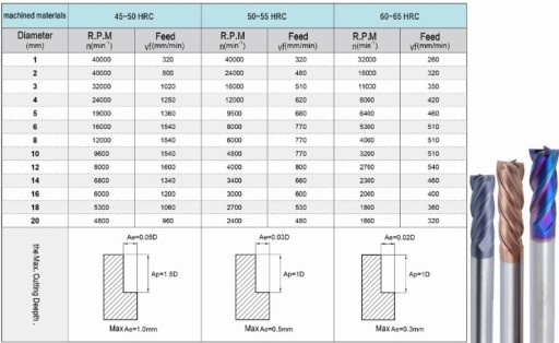 - Frezy do stali hartowanej i hartowanej (HRC55)