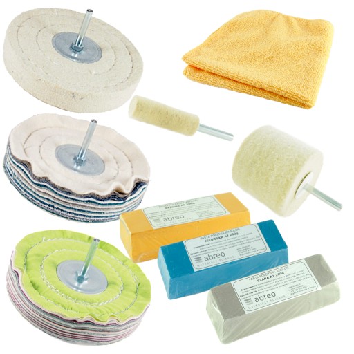 Zestaw tarcz i past do polerowania felg aluminiowych, stali i innych metali.