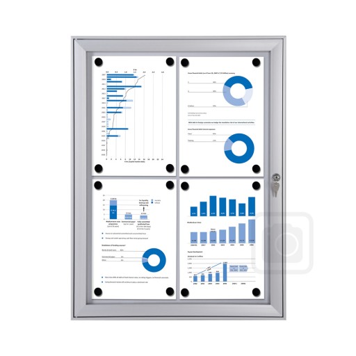 Magnetyczna gablota informacyjna zamykana na klucz wykonana z anodowanych aluminiowych profili. Plecy gabloty wykonane są z blachy pomalowanej proszkowo dzięki czemu powierzchnia jest magnetyczna oraz daje możliwość pisania markerami. Idealne rozwiązanie na klatki schodowe, do biur, urzędów, szkół, przed budynek itd.